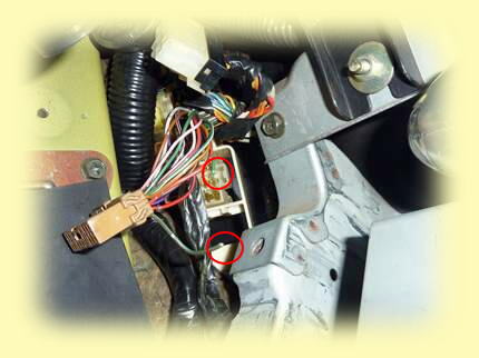 もう1つのヘッドライト切り替えリレー用の電源は助手席足元のメインハーネスのカプラーが別になっていて