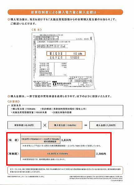 太陽光発電の新たな買取制度の案内が東京電力より届きました。