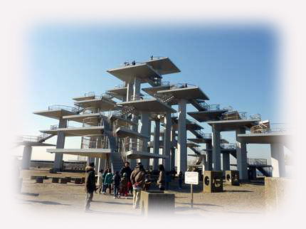 富津岬の突端には宝くじ協会によって修復されたオブジェの様な明治百年記念展望塔が建っており