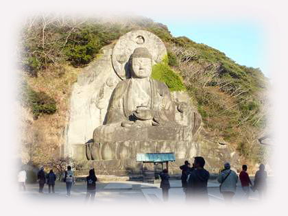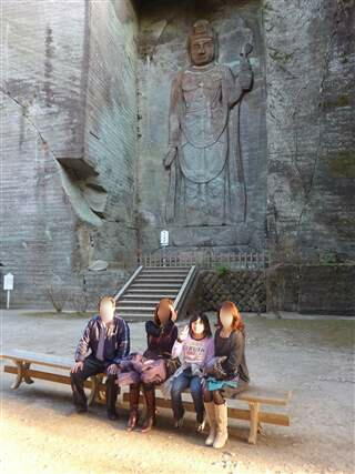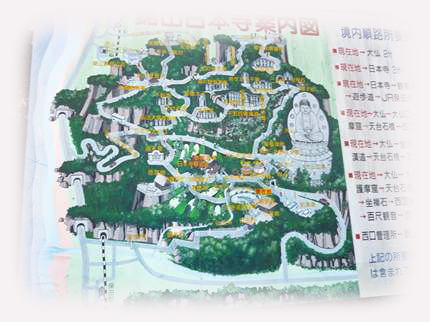 山頂少し手前に山肌を削って彫った百尺観音がありました。(1尺30cmとして30m、10階建てのビルくらいですか)