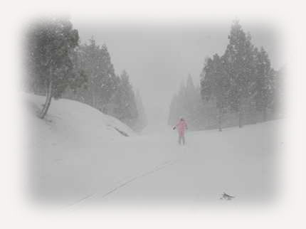 でも後から聞いたらこの視界ゼロに近い状態でのスキーは高齢の父には結構厳しかったみたいです。
