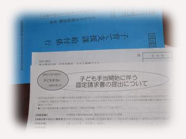 現政権のマニフェストである子供手当の認定請求書が今日届きました。