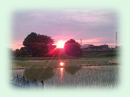 午後6時41分、のどかな田園地帯を走る電車の向こう側に日が沈んで行きました。