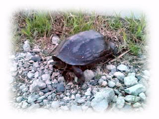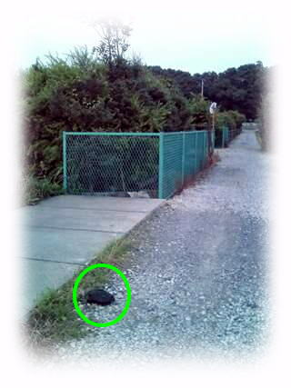 あぜ道をのろのろと横切ろうとしているカメでした。