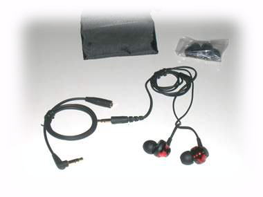 付属品は収納袋、延長コード、サイズ違いのイヤーパッドです。