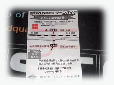 ガソリンの割引券と言えば先日ターンパイクの料金所でガソリンスタンドの場所を