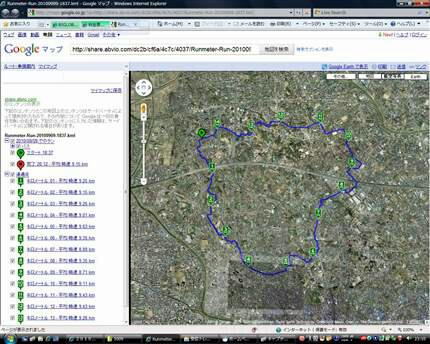 グーグルマップ上に記録されたデータが表示されました。