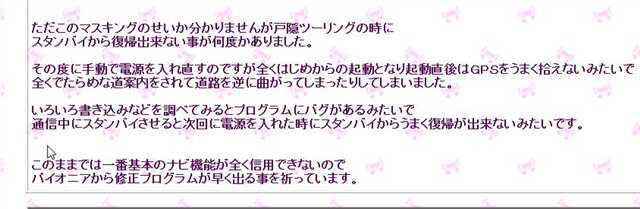 9月30日からの新しい地図データに書き換えると修正プログラムも適用され不具合も治りそうです。