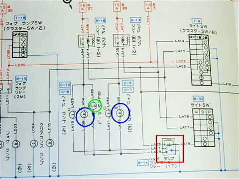 クリアランスヒューズ〜ライトスイッチ〜テール・ストップランプとセンサー〜テール・ストップランプという順で同じクリアランス電源と繋がっています。