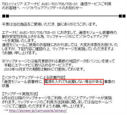 今日、パイオニアから届いたメールにその事の案内が書いてあり