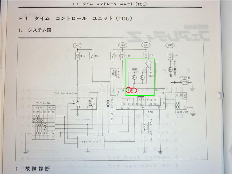 タイムコントロールユニットへマイナス側が11番という端子へ繋がっています。