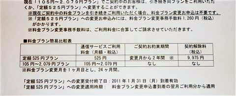 新料金は2年間継続する事を条件に525円の定額になりました。