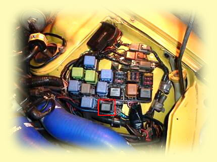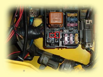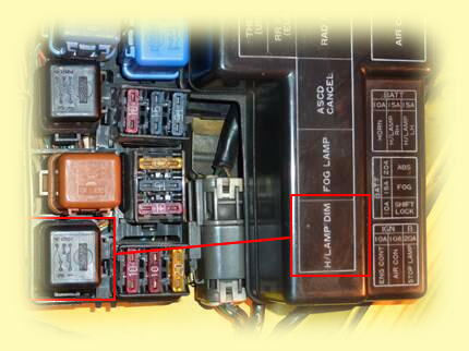 リレー・ヒューズボックスの裏側からフォグのリレーとライト切り替えリレーの基部分を下に外し、