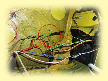 クリアランス電源の配線の色を確認するためにメインハーネスのカバーを少しめくってみると