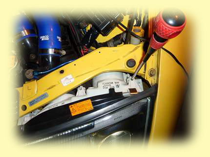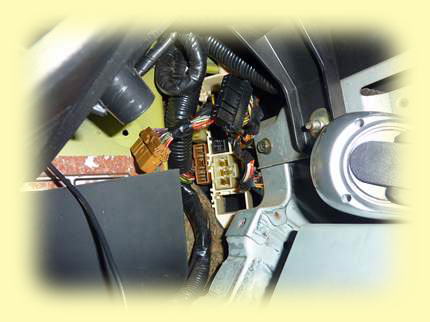 もう1つのヘッドライト切り替えリレー用の電源は助手席足元のメインハーネスのカプラーが別になっていて