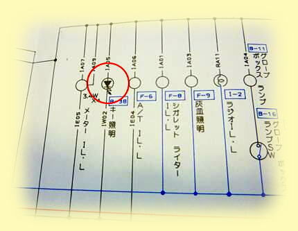 配線図、回路図を良く見てみるとエンジンルームに入っているイルミ電源は