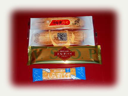 金色の包装紙がうなぎパイ、ブランデーでV.S.O.Pのマークが付いています。