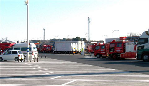 確かに広い海老名SA(上り)には山陰や広島方面からの消防、レスキュー、救急車がたくさん止まっていましたし、