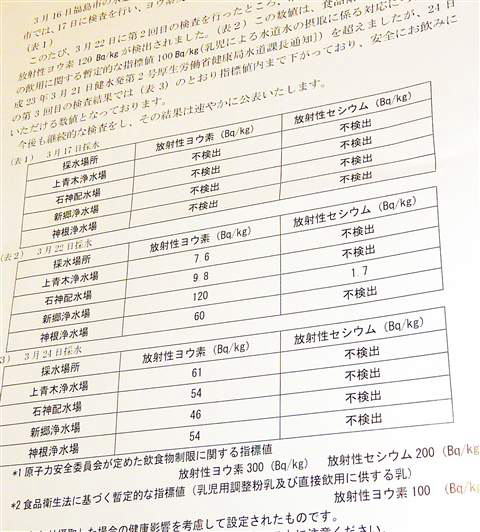 水道水の放射線物質検出で水道局からの印刷物がポストに届いていました。