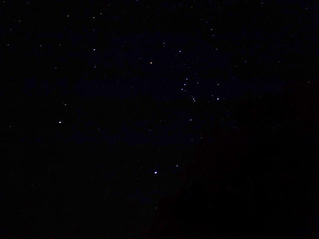 午後11時を過ぎて空を見てみるとシリウス(おおいぬ座、冬の大三角の下)も確認できるようになりました。
