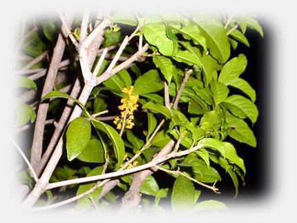 夜、覗いてみるとまるで春先の桜が一斉に開くように橙色の小さな花が咲いていました。