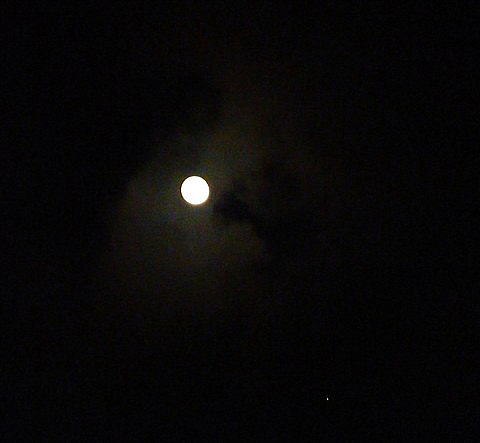 22時を過ぎたころに流れる雲の隙間からお月さまとその右下に木星を見る事が出来ました。