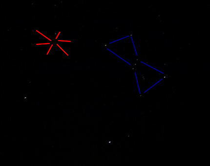 寒さに震えながら眠たい目をこすり撮影中にぼんやりと南天を見上げていると冬の大三角の中心点くらいの場所に