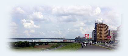 橋のアーチの中に見える電気量販店とホームセンターの看板は先週ランドマークとして見たので