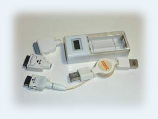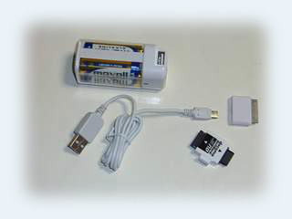 単3形乾電池でiPodや携帯をUSBケーブルで充電できるマルチ充電器です。