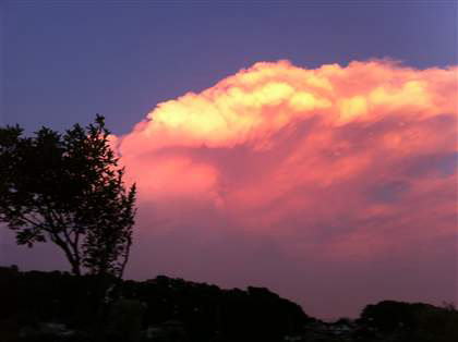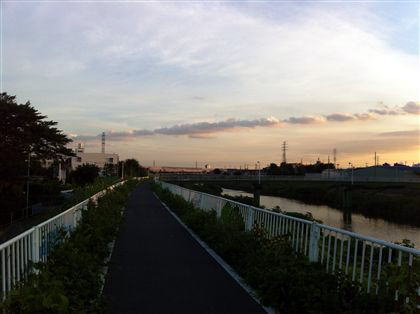 東にはまだ積乱雲が残っていて夕日に照らされて茜色に染まっていました。