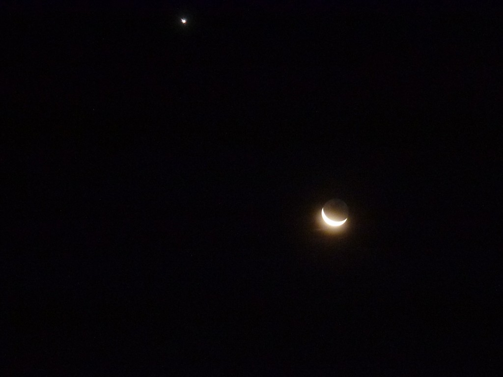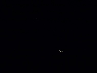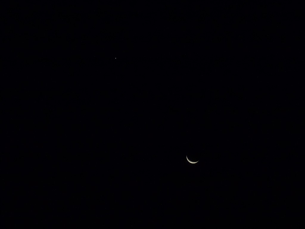 肉眼で見えた月はこのくらいに薄く、そして金星は眩いくらいに白銀に輝いていました。