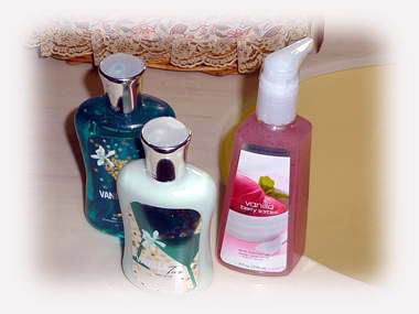 シャワージェルとボディローション、ハンドソープでいずれもバニラの香りです。