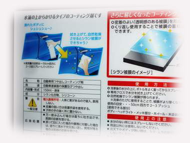 洗車した時の濡れたボディのまま使えるコーティング剤(簡易液体ワックス)です。