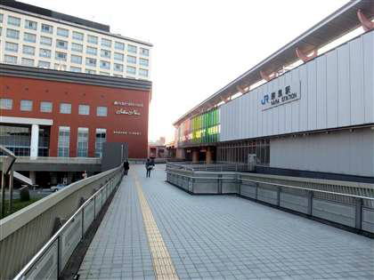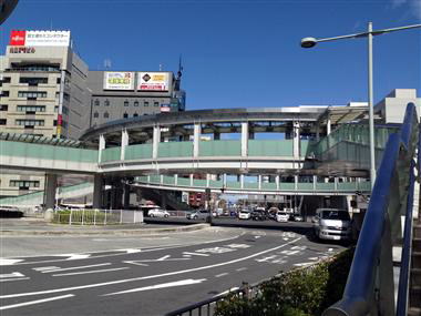 近未来的な歩道橋、みなとみらいにも似たものがありましたっけ。