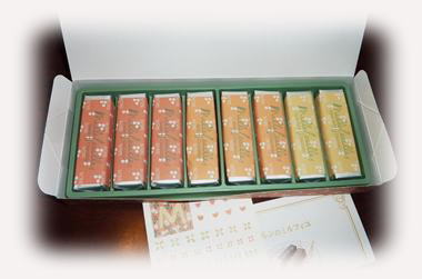 スイートチョコ、ミルクチョコ、へーゼルナッツチョコの3種類