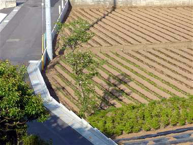 家の窓からは新しい住宅地と植木畑の新緑の織りなす郊外らしいのどかな景色が