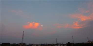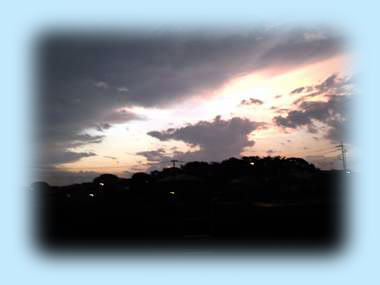 日没頃、雲の隙間からオレンジ色の空が顔を出していましたが