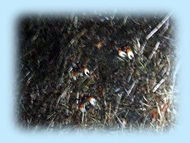 雷で驚いたのか土手の上を群れをなして移動中のカニを見つけました!