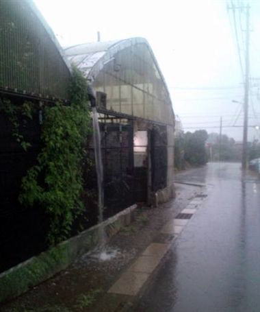稲光で真昼の明るさの刹那の直後からバケツをひっくり返したような大雨となりました。
