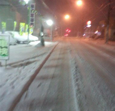 お昼くらいまでは、道路には積もっていなかったのですが・・・