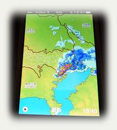 北の方で急激に発達した雨雲が南に下りてきたみたいです。
