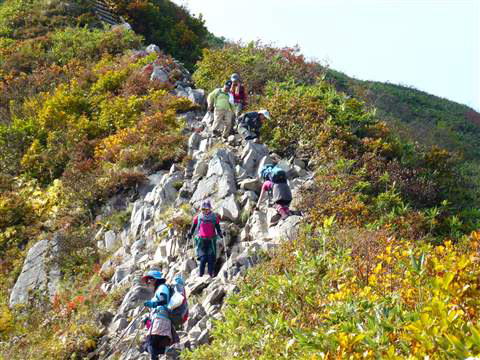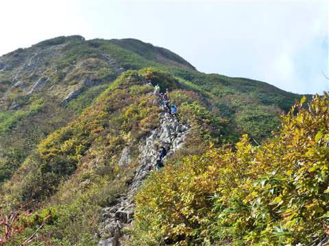 雨飾山はこの10月の連休が紅葉のピークを迎えており登山客もやはりピークだとの事です。