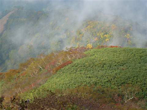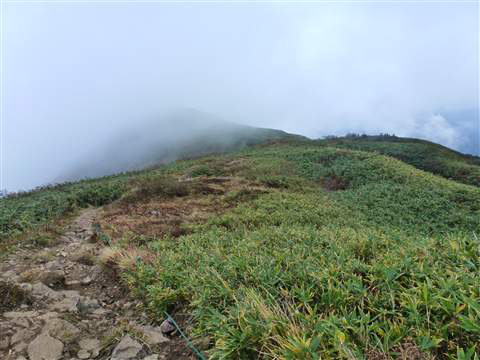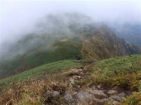 その内に山頂部の高さまでも雲に覆われ始め一気に気温が下がり汗で濡れていた身体が冷えて来ました。