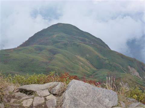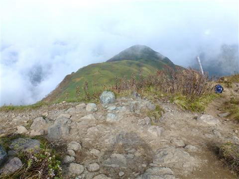 下りてきた山頂方向を見上げると雲に覆われてみる事が出来ませんでした。