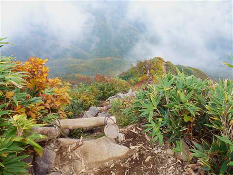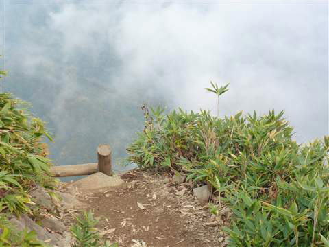 登山道は尾根伝いに沿って続いているので左側は千尋の谷、、