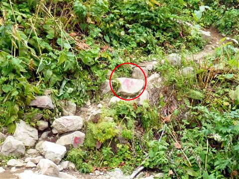 沢から登山道への案内は矢印の赤ペイントです。