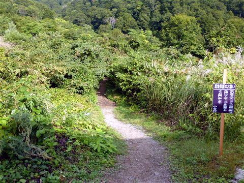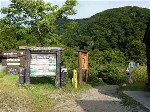 キャンプ場の少し高い場所の区画から200mほど下った登山口から登山道へ入ります。