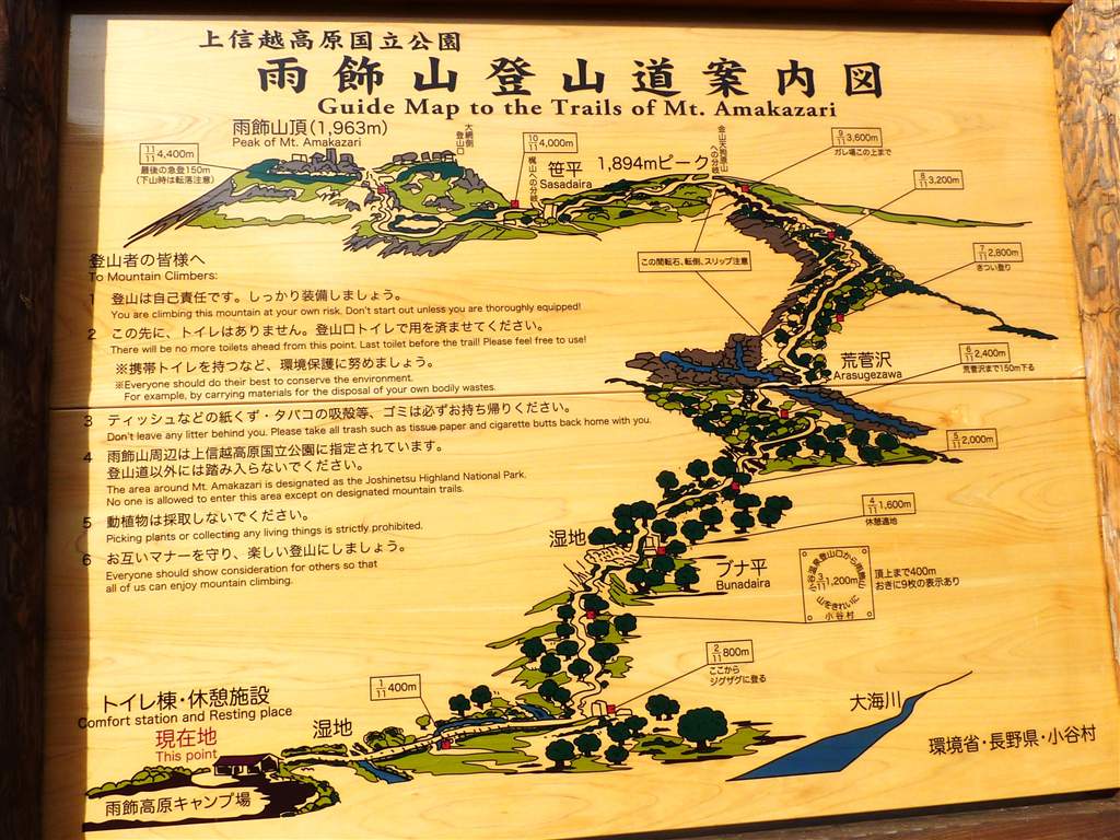 笹平を横切り麓に到達し少し登ったところで下の案内板が、、