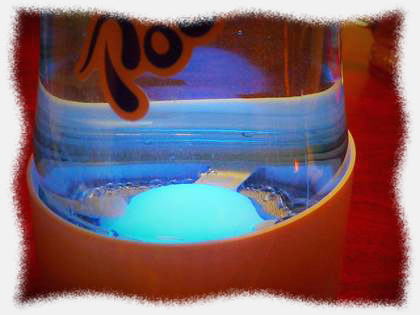 ボタンを押すと虹色変色LEDが点灯して水素の細かい泡が下部から発生しているが分かります。