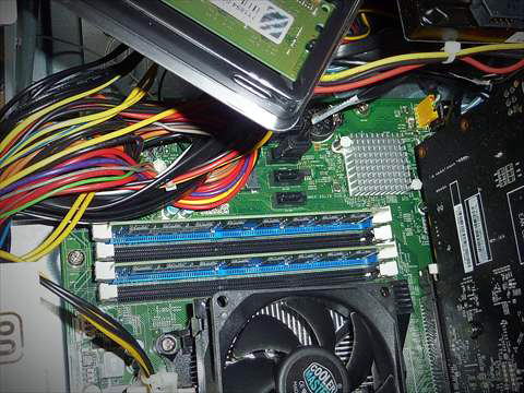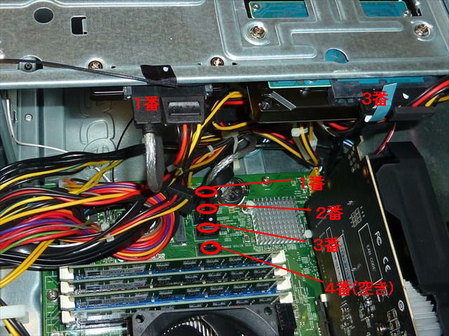 電源の奥のマザーボードのCPUの隣にそれらしきスロットを見つけて交換しました。